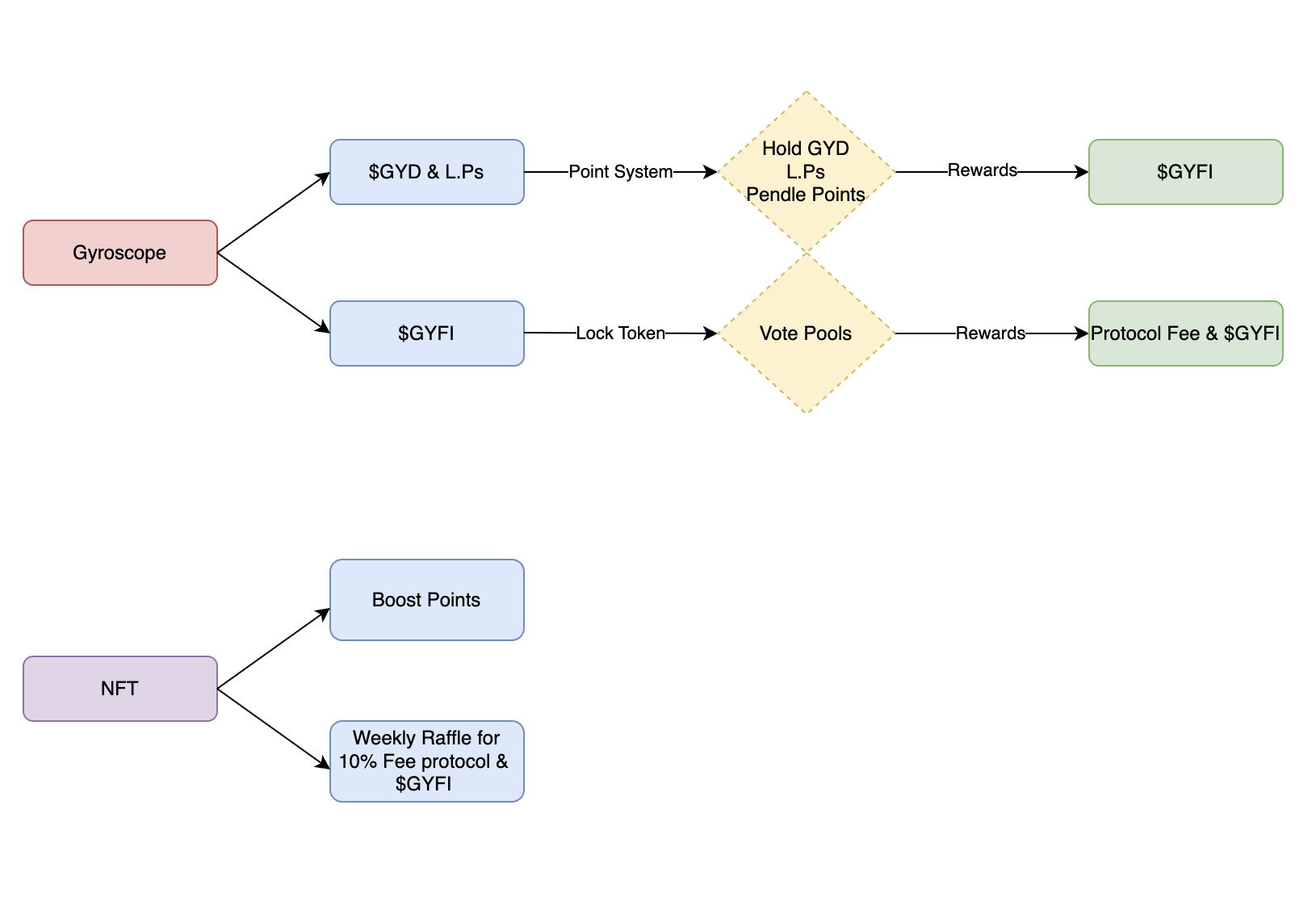 • Staking for voting rights → earn % of pool fees + bonus GYFI.
